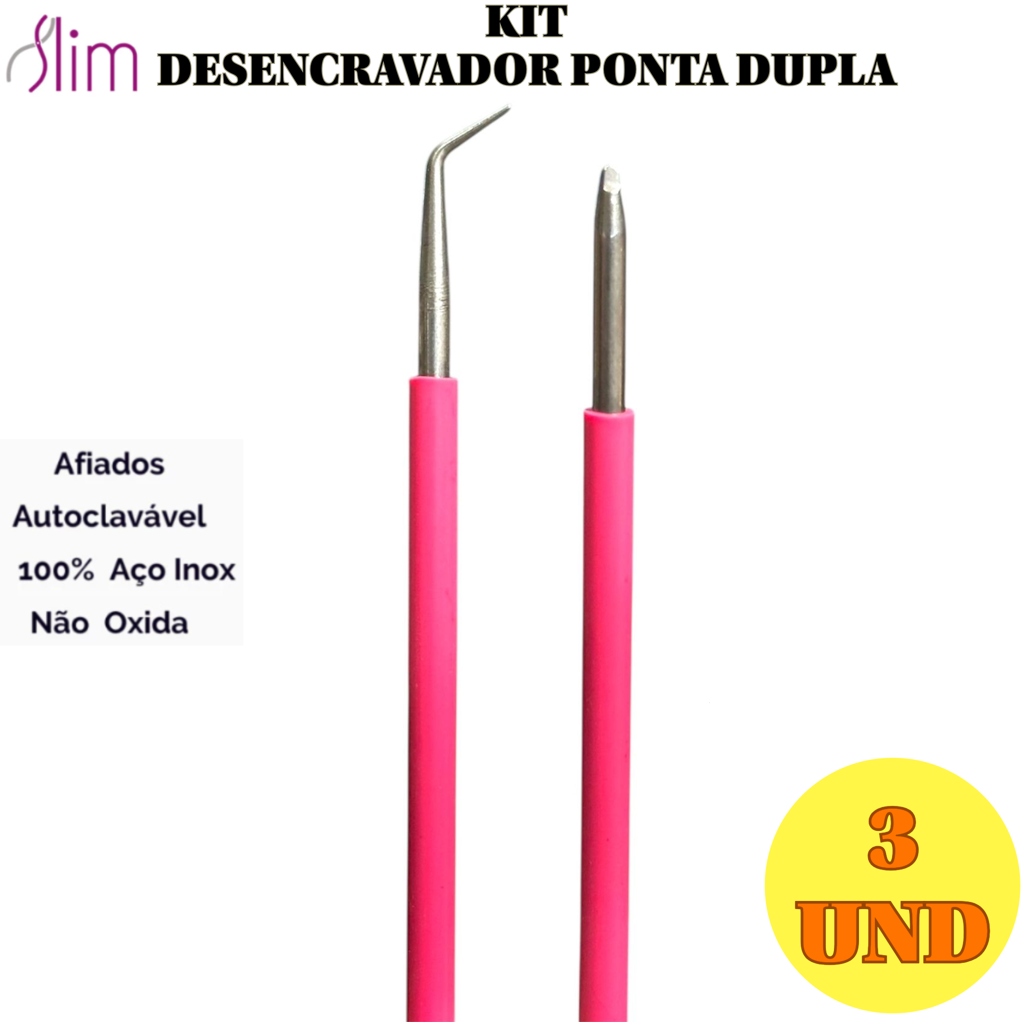 Kit 3 unidades, O Desencravador Ponta Dupla Emborrachada em Aço Inox é uma ferramenta profissional desenvolvida para remoção precisa e segura de unhas encravadas. Ideal para manicures, pedicures e podólogos, oferece controle e conforto durante o uso.