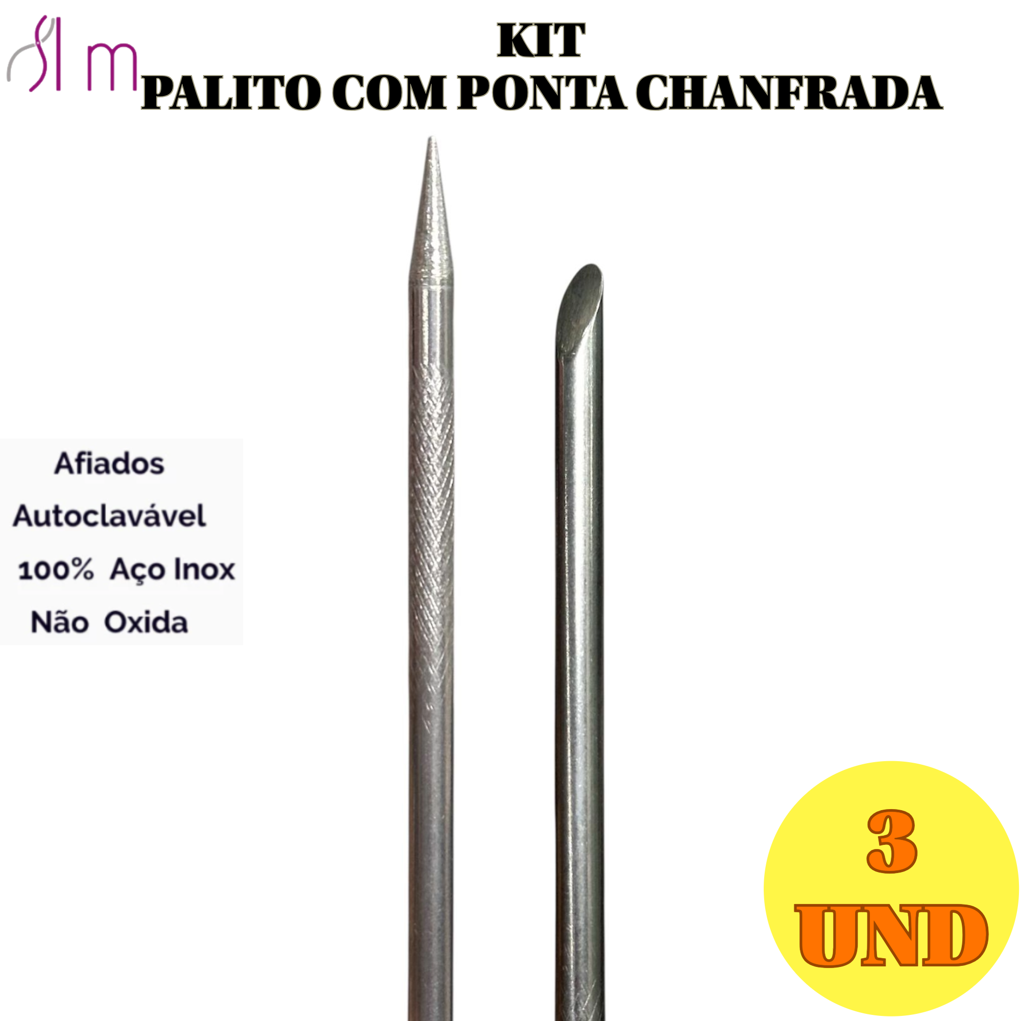 Kit 3 unidades, O Palito para Cutícula com Ponta Chanfrada em Aço Inox é o instrumento ideal para profissionais de manicure e pedicure que buscam precisão, durabilidade e praticidade no cuidado das unhas.