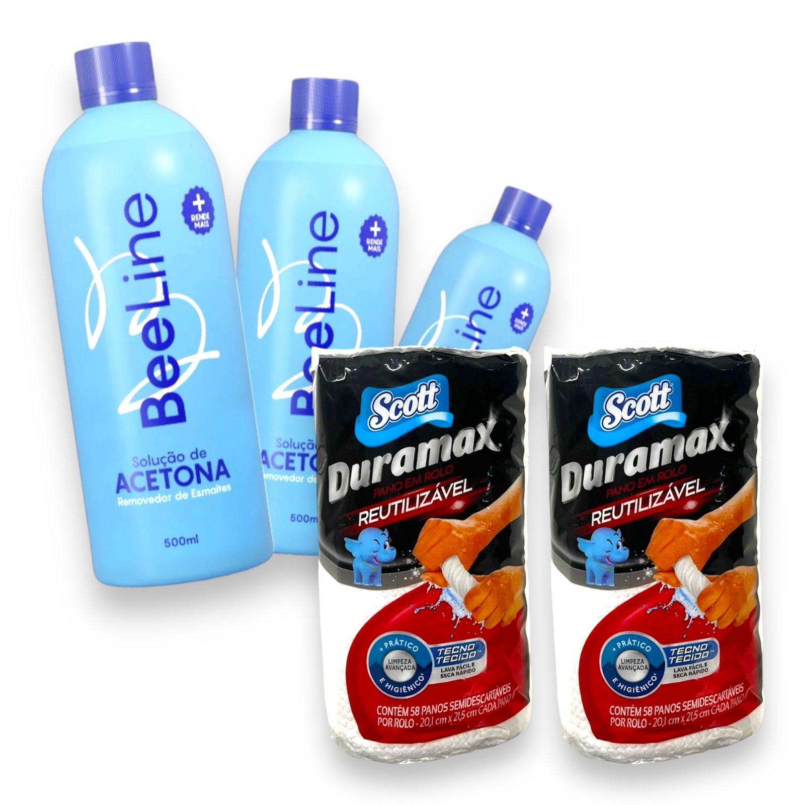 Título do anúncio: Kit 3 Removedor de Esmalte Bee line 500ml + 2 Toalhas em Rolo Multiuso Duramax (58 Panos)